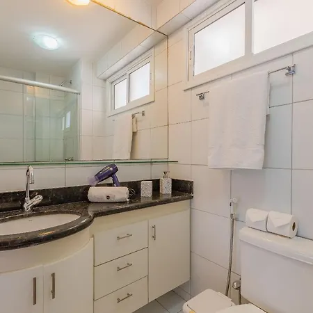 Além de confortos como controle de temperatura, as comodidades modernas, como TV, também estão à disposição dos hóspedes. Desfrute do conforto do banheiro no apartamento Beach Village #1503 - Ape Na Praia Por Carpediem, que está equipado com secador de cabelo, lençóis de banho e toalhas. Você encontrará também bidé.